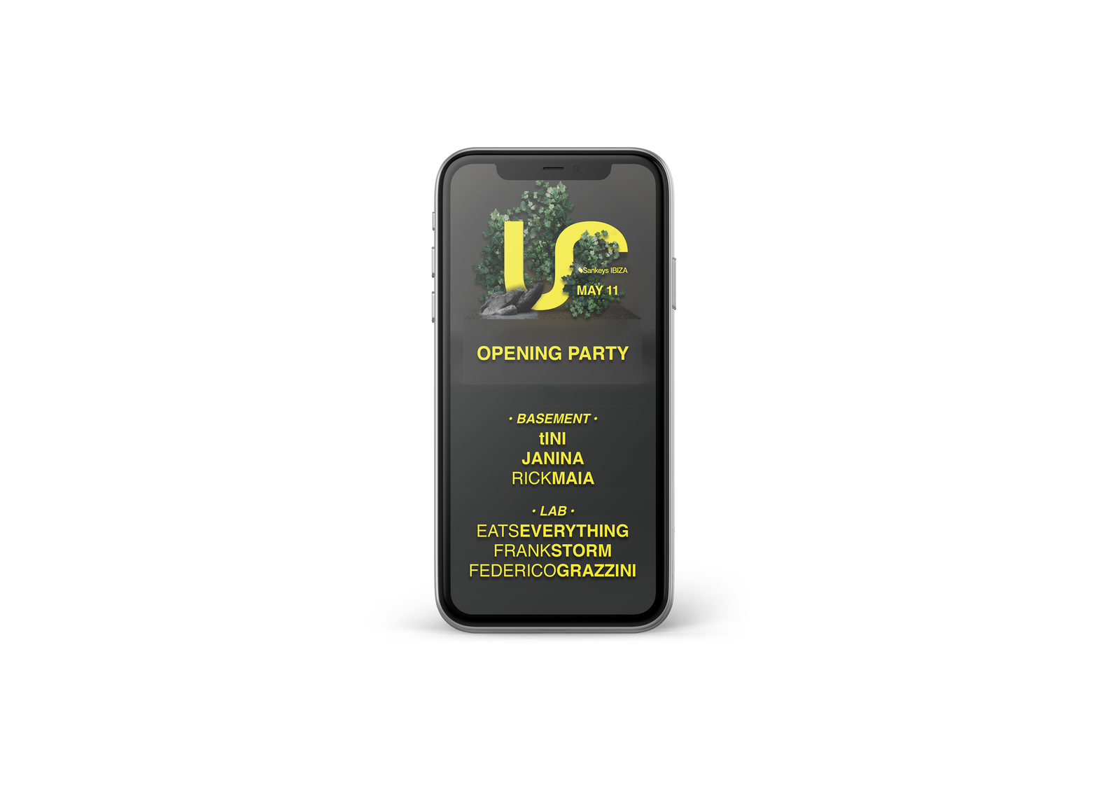 Ideazione del logo, sviluppo materiale adv online e offline per eventi presso il club Sankeys Ibiza e altre location europee.
